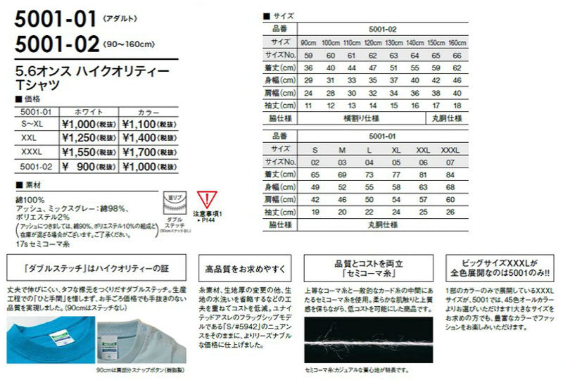 半袖Tシャツ 5.6オンスTシャツ 90cm〜160cmサイズ キッズ 45カラー ユナイテッドアスレ5001-02 UnitedAthle 【メール便で送料無料】