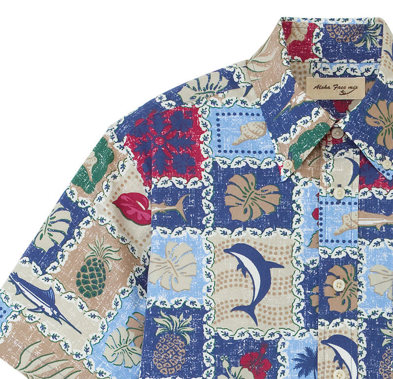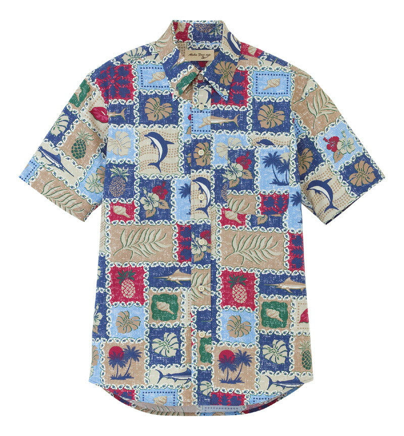 ボタンダウン アロハシャツ 半袖シャツ キルト柄 男女兼用 1カラー SS〜4Lサイズ LIFEMAX FB4519U 送料無料